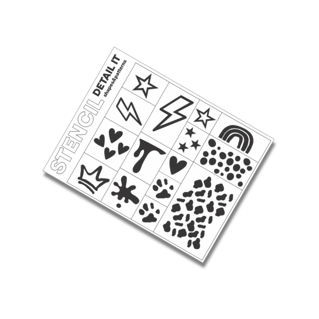 Stick them on, trace them, colour them and reuse them. Ever-changing stencil designs cut on a vinyl sticker for easy use.